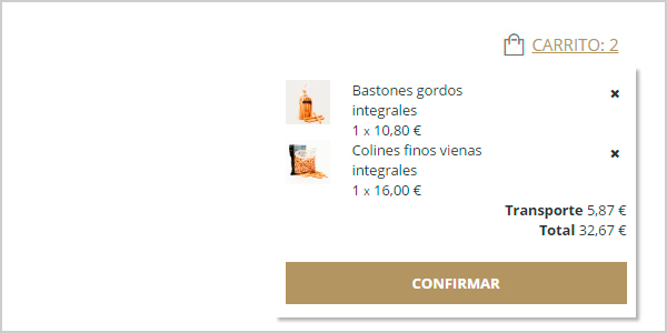 Para adquirir productos pulsa el botón 'Añadir al carrito'. Estos productos se guardarán en el carro de la compra, que puedes revisar en cualquier momento haciendo clic en el resumen de compra.